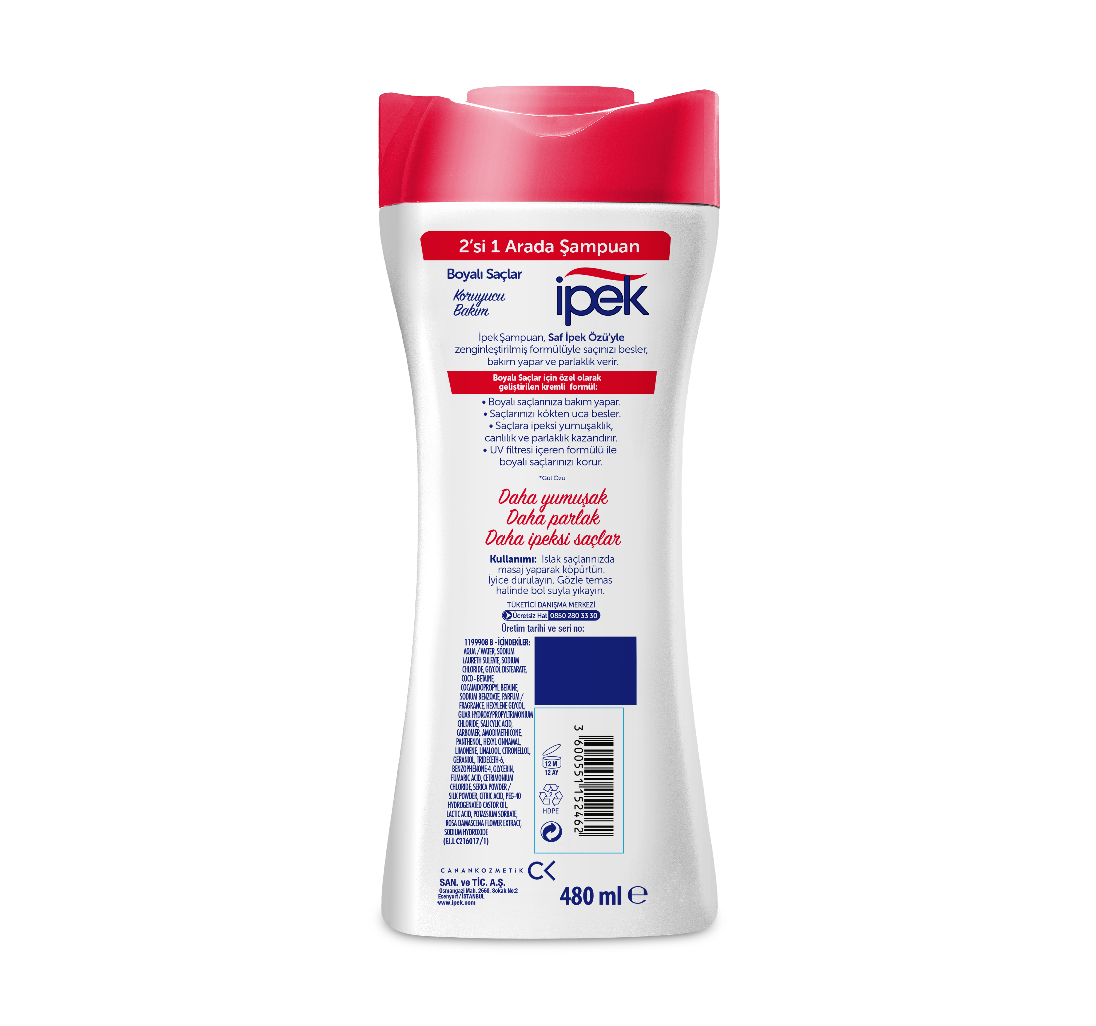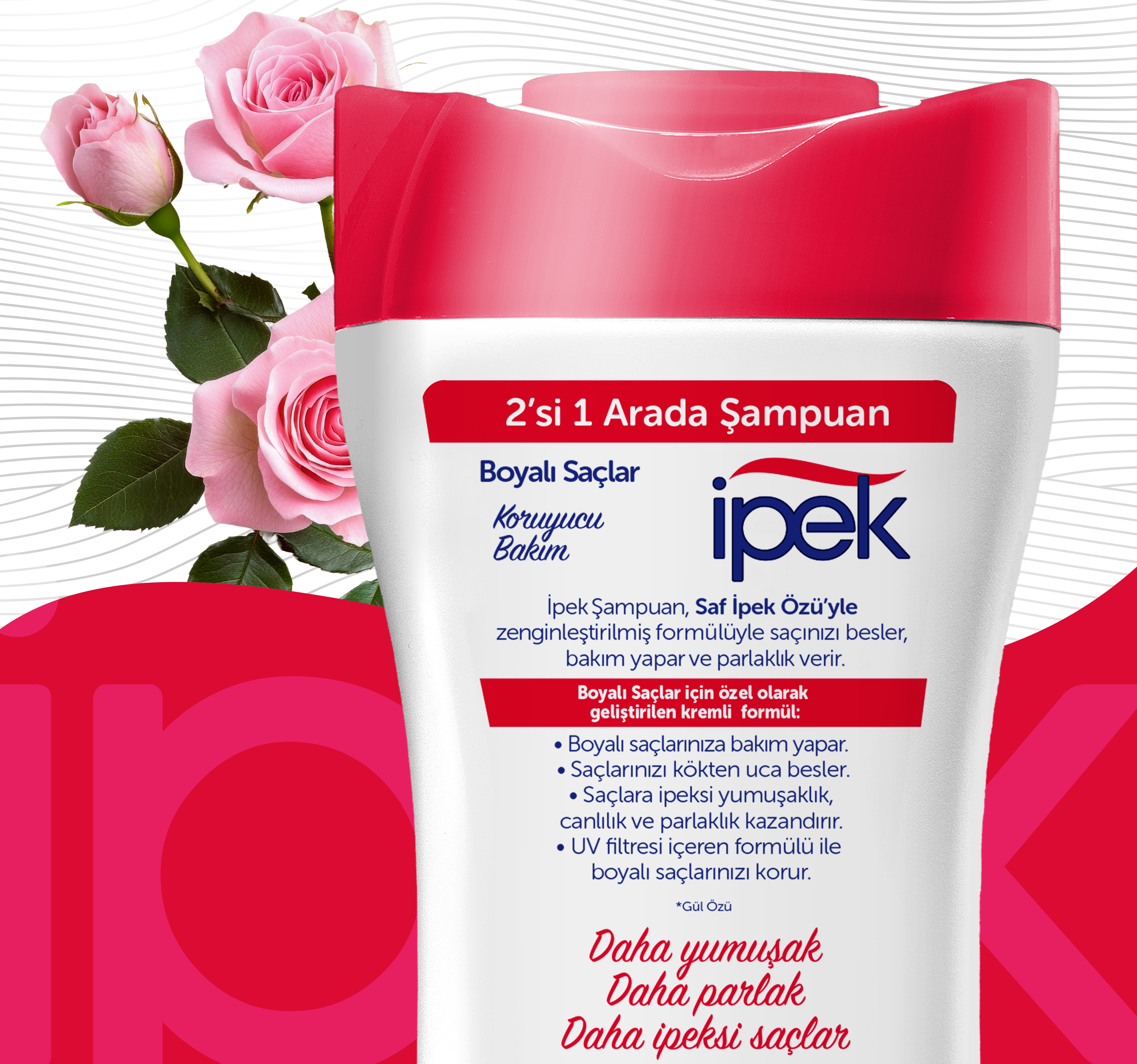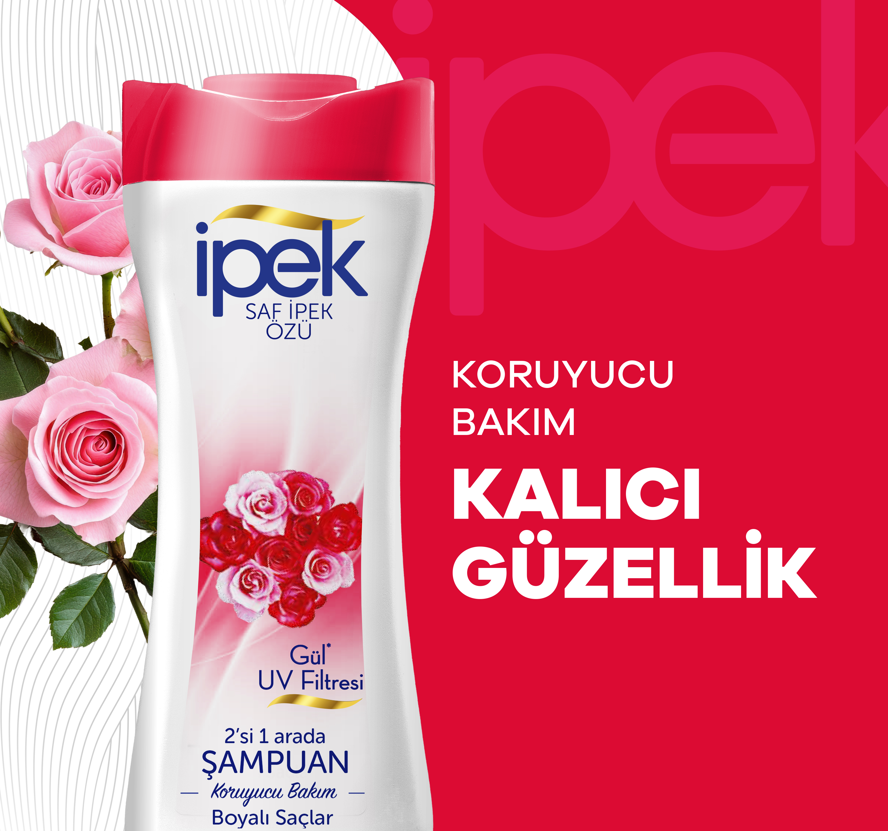 İpek Gül Özü & UV Filtresi Şampuan 2si1arada, Saf İpek Özüyle zenginleştirilmiş kremli özel formülüyle saçınızı besler, bakım yapar ve parlaklık verir. Günlük kullanıma uygundur.